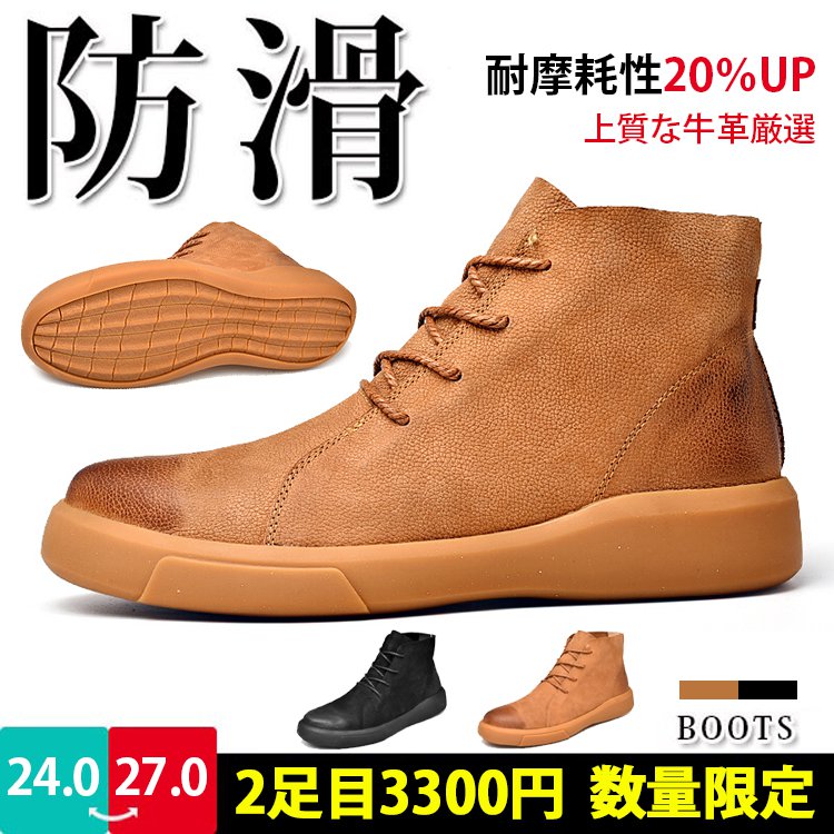 【くるぶし丈ブーツ】上質な牛革 耐磨耗 抗菌 衝撃吸収 裏起毛